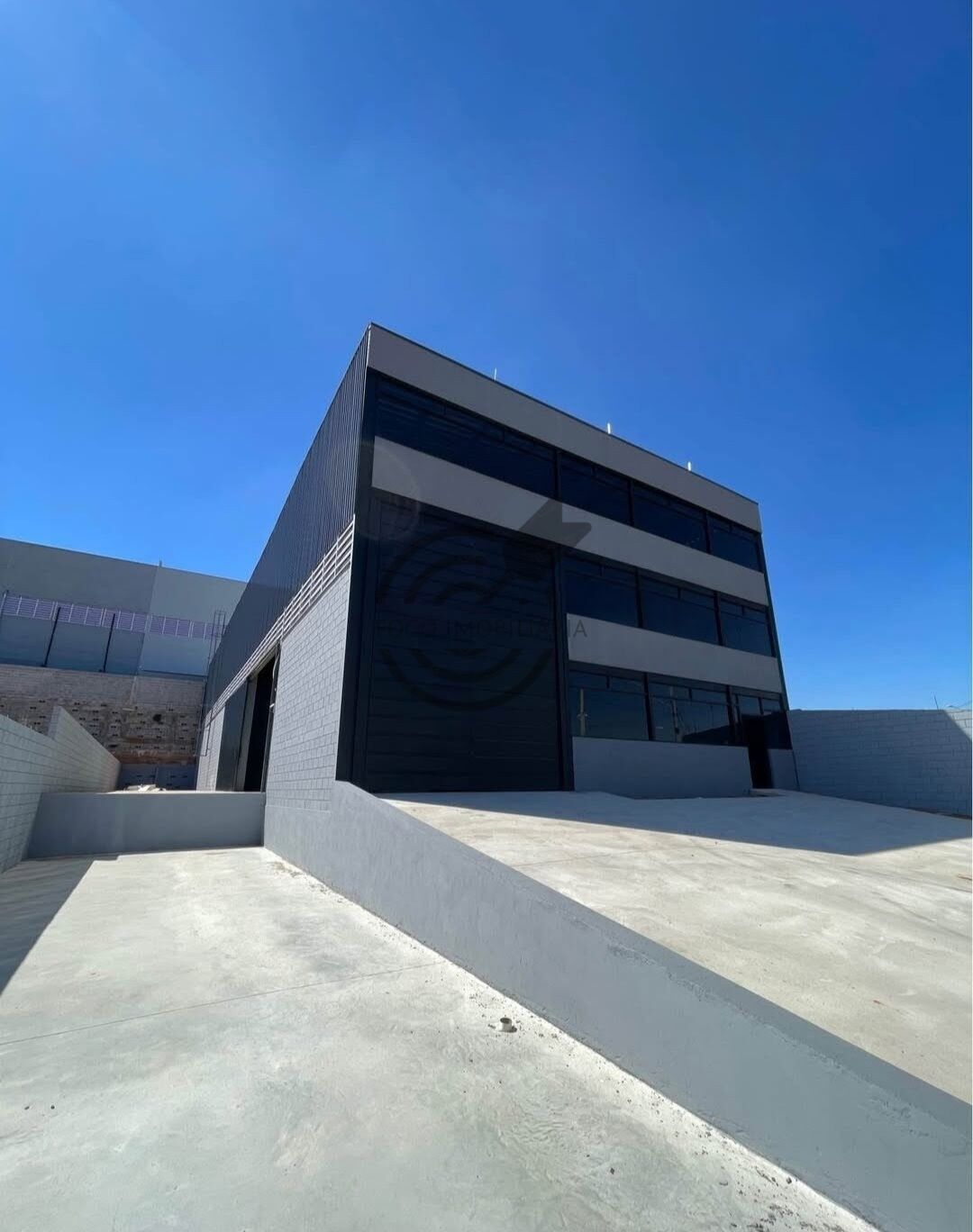 pé direito de 9m , mezanino duplo com vão livre , doca , piso resistente , banheiros e escritórios .