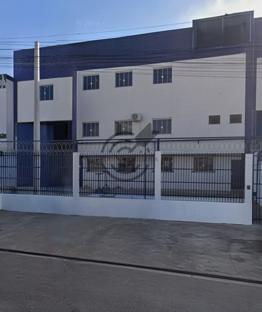 Área administrativa frente : no térreo com recepção, 2 salas e 2 banheiros, parte superior com mais 3 salas , copa e 3 banheiros.