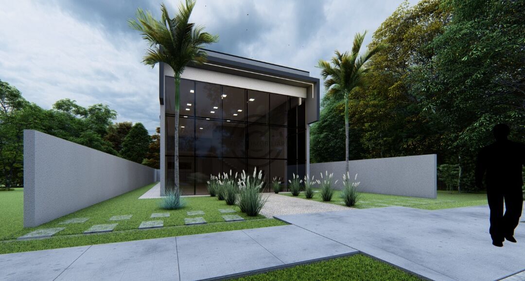 Fachada imponente com 8 metros de altura e 12 metros de frente, porta e mezanino. Vagas para estacionamento, cozinha, quintal, e banheiros.